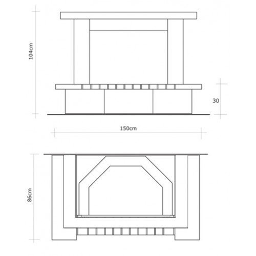 Адаптированные топки: IC 75 N frontale и Tekno 1. Размер облицовки Ширина: 150 см. Высота: 104 см. Глубина: 86 см.