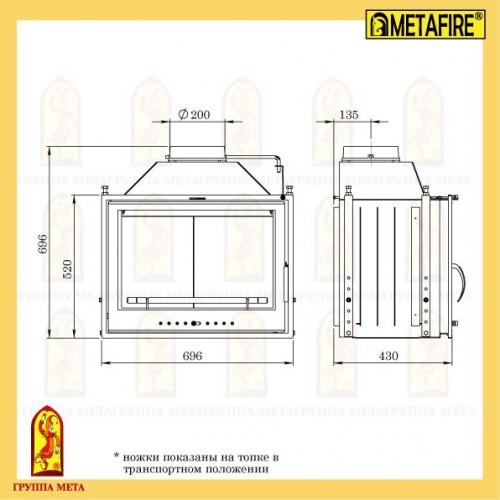 Топки торговой марки  METAFIRE изготовлены из высококачественной стали и предназначены для устройства камина. Топочная камера футерована шамотными огнеупорными плитами. Все топки укомплектованы специальными термостойкими стёклами производства Японии.