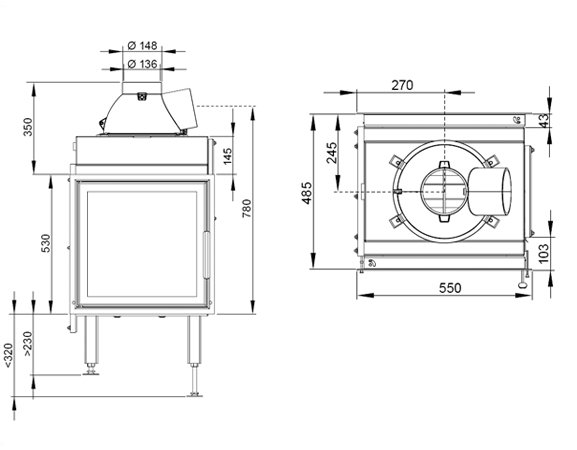 • Диаметр дымохода, (мм)